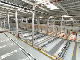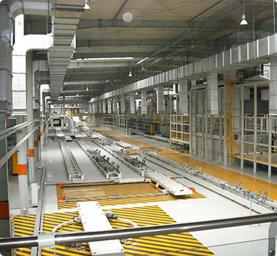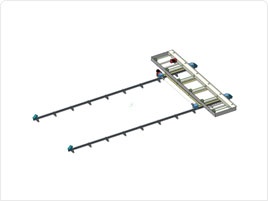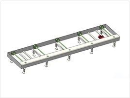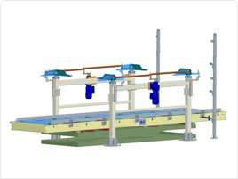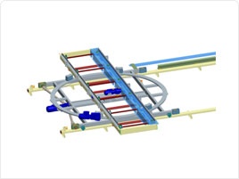 地面滑橇输送系统由由滚床、高温滚床、升降机、移行机、链式移行机、旋转移行机、叉式移载升降机、单链(或双链)输送机、旋转滚床、滑橇及堆/拆垛机等多单元组成。